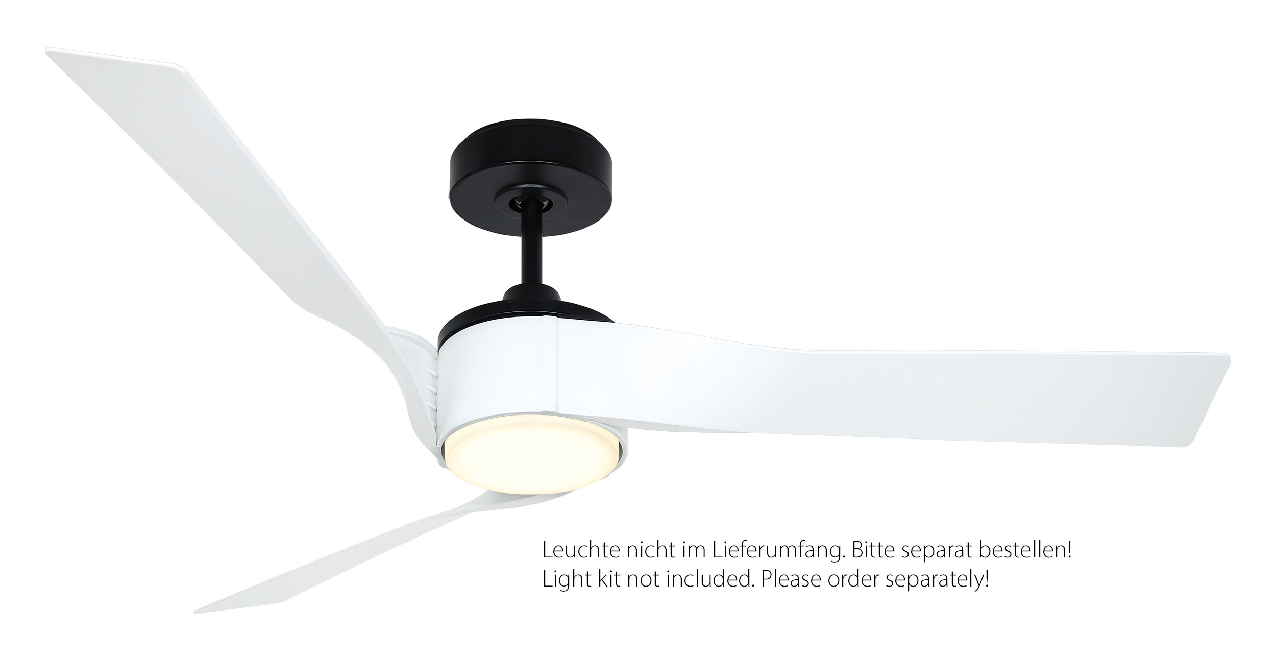 CasaFan ECO REVOLUTION MNS-MWE, Energiespar Deckenventilator, Ø 136 cm, Gehäuse Lack matt nachtschwarz, 3 Flügel Matt weiß aus Kunststoff für hohe Luftleistung, 220-240 V 50 Hz, DC/EC Motor 2,4-24 W, inkl. Funk-Fernbedienung (Motor 6 Stufen, Vor-/Rückwärtslauf - Sommer/Winter -, Schlaftimer, Licht ein/aus/dimmen) und Wandhalter, Zeitlupenstufe, Drehzahl max. 30-144 U/min, inkl. 2 Deckenstangen (150 und 80 mm), Abstand Decke - Flügel 282 mm (212 mm mit kurzer Deckenstange), Montage an Schrägen bis 10°, gewuchteter Motor und Flügel, für Raumgrößen bis 35 m², Zubehör wie passende Leuchten erhältlich