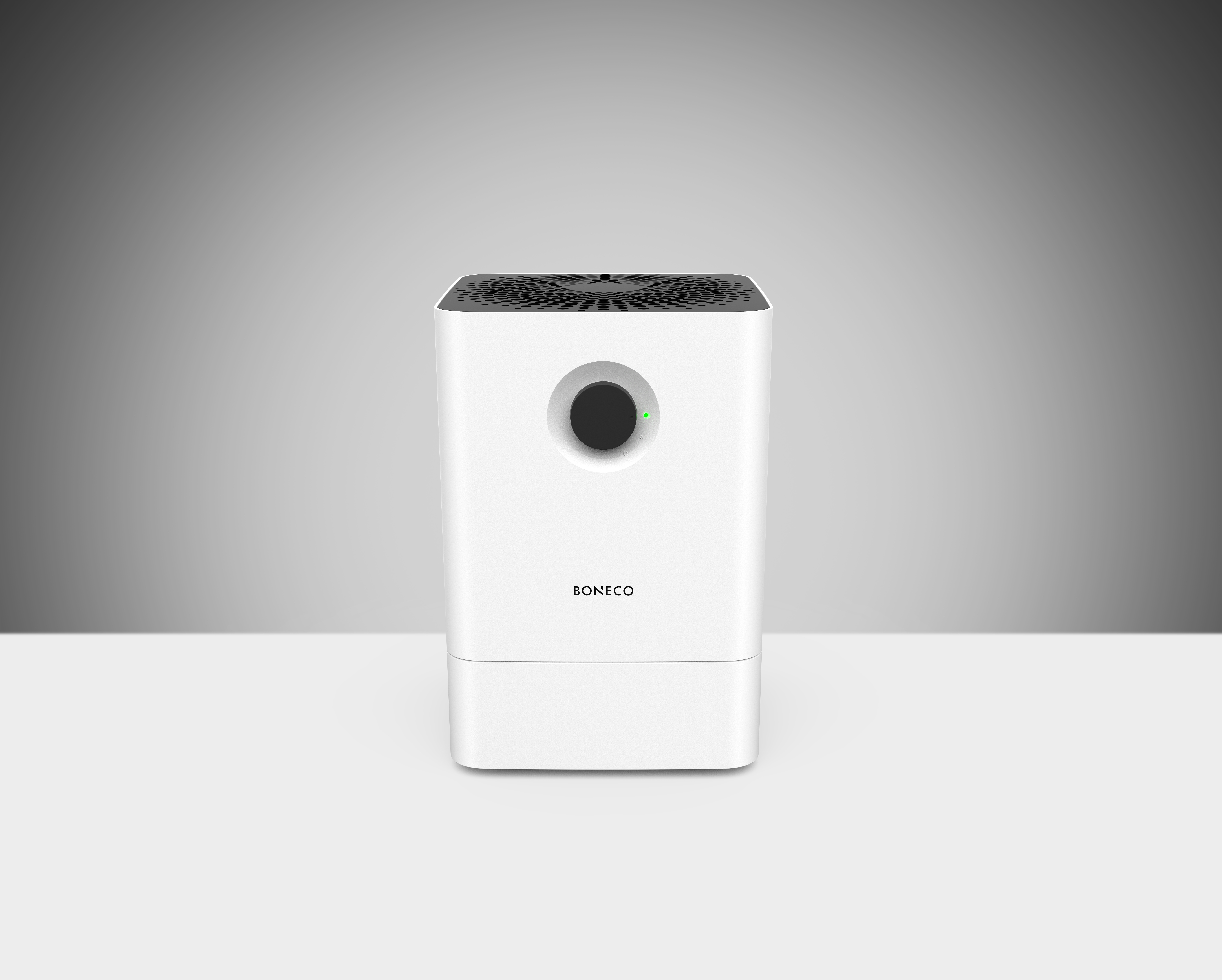Es ist die Einfachheit der Bedienung und Wartung, was den Luftwäscher W200 ausmacht. Über den Drehschalter kann zwischen zwei Leistungsstufen gewählt werden. Zur Reinigung können die Wasserwanne und die Verdunstungselemente praktisch in die Spül-, bzw. Waschmaschine gegeben werden. Wer gerne einen bedufteten Raum hat, kann sogar Duftöle beigeben. Eine LED-Anzeige leuchtet auf, wenn die Wasserwanne leer ist. Der Luftwäscher schaltet dann automatisch ab und kann mit frischem Wasser befüllt werden. Aber nicht nur das – durch sein schlichtes, modernes Design passt der W200 in jeden Wohnraum oder Büro und überzeugt durch seine hohe Leistung.