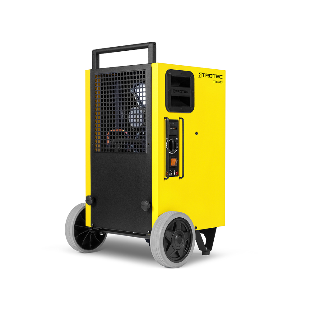 Der TTK 355 S wurde entwickelt, um hohe Luftfeuchtigkeit zu reduzieren und große Räume trocken zu halten. Er verfügt über einen robusten 1,27-kW-Rotationskompressor und ein robustes Gebläse für eine hohe Luftzirkulation, wodurch er bis zu 70 Liter Feuchtigkeit pro Tag abführen kann. Sein automatisches Heißgasabtausystem sorgt für eine ununterbrochene Entfeuchtung bei niedrigen Temperaturen. Der Kondenstrockner ist mit seinem ergonomischen Design, den großen Rädern und dem höhenverstellbaren Griff für den einfachen Transport auch auf unebenem Gelände mobil. Er ist mit Schutzgehäusen für elektronische Komponenten ausgestattet und bietet benutzerfreundliche Bedienelemente.