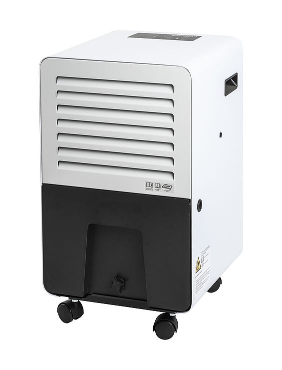 Formschöner Entfeuchter mit hochwertigem Stahlblech-Gehäuse. Mit einer Entfeuchtungsleistung von 18 Litern pro Tag (bei 30 °C / 80 % rF).