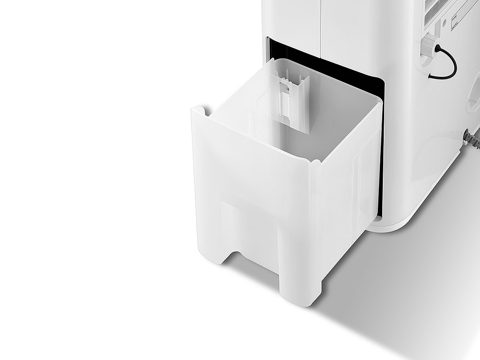 - Kondensatabführung: 2,5 Liter Auffangbehälter, überlaufgesichert, mit Kontrolllampe oder Direktablauf