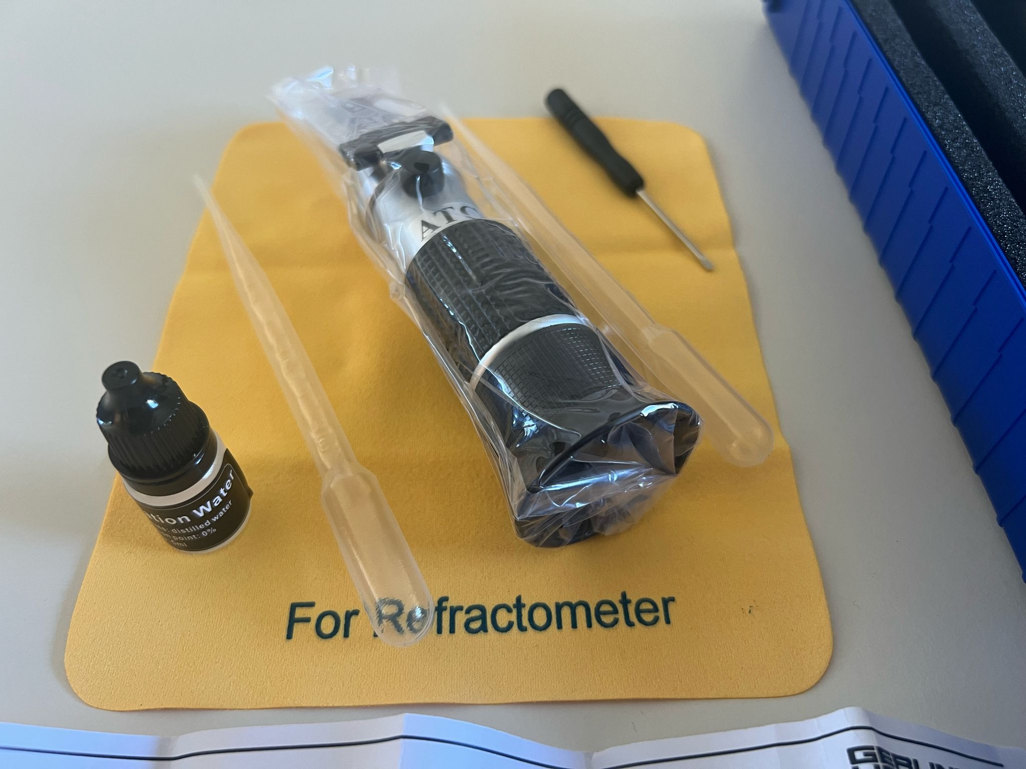 den Deckel wieder schließen. Dann das Refraktometer gegen eine