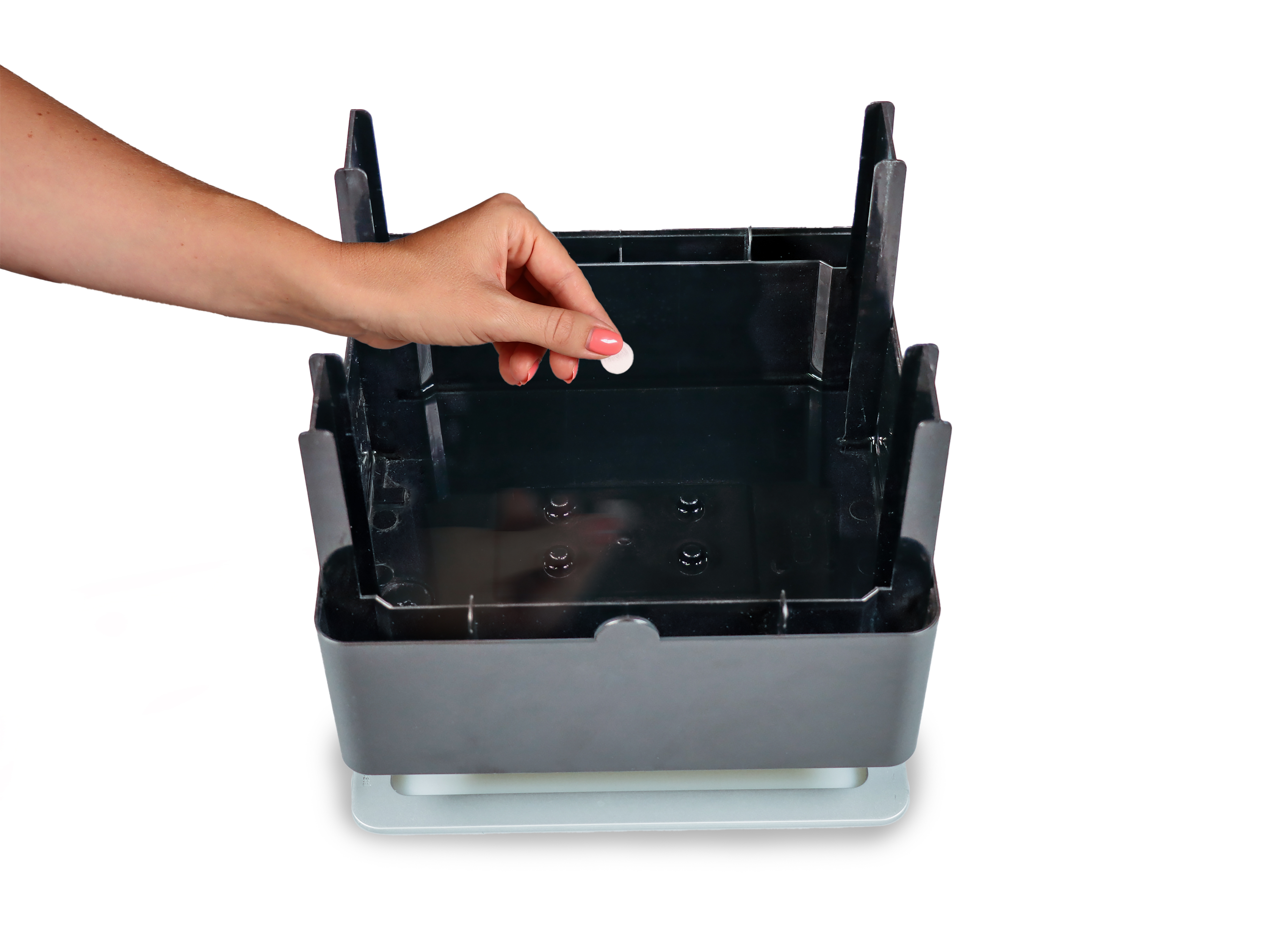 Lediglich alle zwei Wochen eine Tablette in den Wassertank oder Wasserbehälter des Luftbefeuchters oder Luftwäschers geben und mit Wasser auffüllen. Das reicht, damit sich der Hygiene Tab rückstandslos auflöst und die Raumluft mit hygienisch sauberem Wasser anreichert.